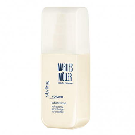 Volume Boos Styling Spray de Marlies Möller es una laca en spray que tiene efecto voluminizador. Es un spray ideal para estilismos. Protege del calor y dota de mayor resistencia al cabello. No se aclara y se fija con calor.