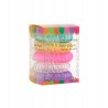 Pack de 5 gomas de pelo (azul, naranja, fucsia, transparente y morada) que, gracias a su diseño, no dejan marcas y no enredan el cabello. Son resistentes al agua.