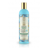 Este champú vigorizante le aporta al cabello máximo volumen y brillo y lo protege de la exposición al calor durante el secado. Restablece y eleva el cabello desde las raíces sin apelmazar. Las vitaminas y los aminoácidos nutren y reparan el cabello. Los aceites de oblepikha de Altái, de argán de Marruecos y el aceite orgánico de semillas de lino blanco siberiano ayudan a producir queratina natural, obteniendo un cabello brillante y fuerte. El ginseng y la corteza de pino retienen la humedad en la estructura del cabello. Después de aplicar este champú, el cabello se ve extraordinariamente bonito y asombrosamente voluminoso.