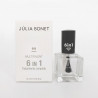 Utilizado como capa base, protege las uñas naturales de la decoloración. Aplicado con una capa fina y uniforme, Júlia 6 en 1 aporta un acabado increíblemente brillante a las uñas y da al esmalte una fijación extralarga. Revitalizador del color y de secado rápido. Aplicación: Aplique una o dos capas de Júlia 6 en 1 en uñas limpias, sin polvo ni grasa. Da a las uñas una apariencia bien cuidada. Usado como base o capa final, basta con una capa de este esmalte nutritivo.