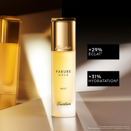 La bruma Parure Gold es el toque final de un maquillaje perfecto. Fija el maquillaje y potencia el brillo de la base de maquillaje.