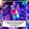 Inicia con notas efervescentes de pomelo, grosella negra y acorde de coca- cola. Esta combinación da paso a un corazón de flores delicadas y ultra femeninas: jazmín, rosa y lirio de los valles. Todo ello sobre un fondo goloso y adictivo de vainilla, almizcle y cedro.