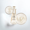 Profundamente hidratada durante horas, la piel aparece renovada, firme, radiante, límpida y tránslucida, como recién nacida, con toda la luminosidad de la juventud, llena de vida.