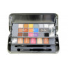 Una Lata que incluye: 24 tonos sombras de ojos, 3 tonos para Cejas, Polvos para el contorno, Iluminadores, Bronceador, Colorete, 3 pinceles de maquillaje.