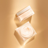 Su tarro cuadrado, con paredes de cristal esmerilado y una tapa con reflejos dorados, ha sido especialmente creado según los códigos de la línea GABRIELLE CHANEL.