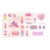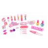 Contenido: 2 esmaltes de uñas, Paleta de brillo de 8 colores, Paleta de brillo de labios de 3 colores, 1 bote de brillo de labios, 3 barras de labios, 2 bálsamo labiales, 2 aplicadores de sombras de ojos, 2 pinzas para el cabello, 1 anillo, 2 gomas para el cabello, 1 espejo, 1 pincel de labios, 1 lima de uñas, 1 divisor de dedos, 1 peine para el pelo.