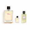 El estuche se compone de Eau de toilette Terre d'Hermès (100 ml), Eau de toilette (miniatura de 5 ml) y gel de ducha para cuerpo y cabello (40 ml).