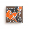 El emblemático diseño La danse des chevaux de Jean-Louis Sauvat, que se traslada de un carré de seda al universo del perfume, adorna con elegancia y brillo el estuche Terre d’Hermès. Un ballet ecuestre de 3 monturas sublima este estuche de líneas poéticas y colores intensos y luminosos.