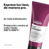 Curl Expression que protege el cabello del calor hasta 230°C/450F con una fórmula untuosa que dura en el cabello sin aportar peso, de la manera pro. Fijación ideal para tus rizos.