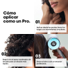 Después de enjuagar y quitar la humedad del cabello, aplicar desde los extremos hasta las puntas con un movimiento de ondulado hacia arriba.