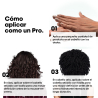 Aplica una pequeña cantidad en las puntas de los dedos y reparte por el cabello usando gestos de definición en las zonas necesarias.