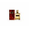 Su presentación en un frasco de cristal transparente, decorado con un tapón dorado, le confiere sobriedad al perfume, pero a la misma vez elegancia y distinción.