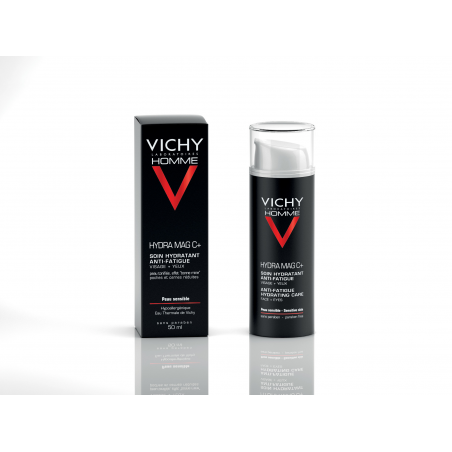 Tratamiento hidratante para hombre anti-fatiga para rostro + ojos. Para hombres con piel sensible que presenten marcas de fatiga: piel deshidratada, tono apagado, sensación de tirantez, bolsas y ojeras. La asociación del Magnesio, la Vitamina C fosforizada y el Dextrano recarga de energía su piel diariamente, atenuando bolsas y ojeras, además de ayudar a la epidermis a combatir las agresiones externas.