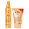 Nuxe Sun Spray Fundente Alta Protección SPF50 150 ml es un cuidado que protege contra los UVB, UVA y el fotoenvejecimiento prematuro de la piel. Evita la aparición de manchas. Ultrapráctico, ofrece una textura fluida que es ligera y deliciosamente fundente y resistente al agua y al sudor. Ideal para actividades deportivas, deja la piel protegida, hidratada, calmada y adornada con un bronceado sublime.