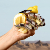 El frasco del perfume K by Dolce&Gabbana Eau de Parfum ofrece una elegante forma geométrica rectangular en un intenso tono azul. Su llamativo tapón, en forma de corona, está recubierto de una capa de plata y cubierta con partículas de oro de 24 quilates.