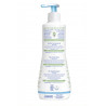 Gel de baño suave que limpia con eficacia respetando la piel y el cuero cabelludo delicados de recién nacidos, bebés y niños.