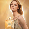 En su frasco cuadrado con paredes de cristal extremadamente finas, el perfume parece levitar, ingrávido. La etiqueta y el tapón se tiñen de un color dorado profundo y rico, al igual que la fragancia.