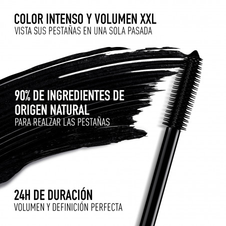 Pump 'N' Volume Máscara squeezable volumen XXL duración 24 horas - color intenso y fórmula con tratamiento - 90 % de ingredientes de origen natural