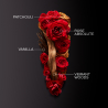 La riqueza del absoluto de rosa se funde con la sensualidad de las cálidas notas de vainilla y pachuli.