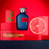 Lacado en un azul denim mate, el frasco de HUGO JEANS presenta un atrevido logo rojo y negro, idéntico al de los icónicos vaqueros de HUGO.