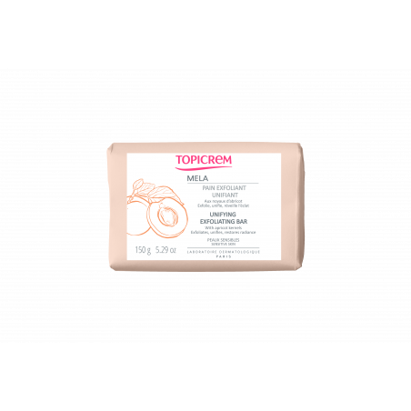 Topicrem MELA Pan Exfoliante Unificante 150 g es un jabón para pieles sensibles. Su fórmula combina :