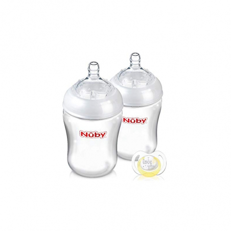 Nuby Pack Biberón 2 X 270ml. Es un biberón pensado para bebés recién nacidos. Su diseño está relleno de amor. Características: