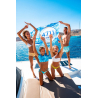 Esta fragancia comienza con una combinación cítrica de lima, limón y naranja. ¡Tu llamada de atención para tu próxima fiesta de verano! En las notas medias, los impulsos afrutados de la manzana verde complementan el fragante cóctel. Los acentos florales de fresia e ylang-ylang despiertan un anhelo por el mar azul turquesa y esa sensación mediterránea relajada. El cedro, el ámbar y el almizcle brindan contraste y variedad en las notas de fondo, dejando una sensación de sol en la piel.