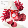 El emblemático frasco-linterna, diseñado por Florence Manlik, tiene forma cuadrada y está adornado con un degradado invertido rojo lichi. Un lazo de seda, obra de Carine Brancowitz, abraza el tapón blanco del frasco.