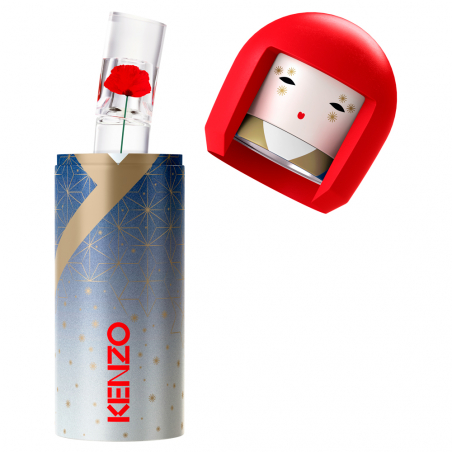de hace 200 años: la muñeca Kokeshi. Vestida con un impresionante kimono, esta figura tradicional se abre para revelar una fragancia delicada, sensual e inesperada, la icónica FLOWER BY KENZO.