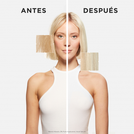 SERUM de Blond Absolu es un sérum hidratante y reparador para cabello y cuero cabelludo. Es lo último en sérum reparador para cualquier tipo de rubio decolorado, ya que contiene Ácido Hialurónico - con nuestra mayor concentración de Ácido Hialurónico Macro y Micro- para reparar el daño en la superficie del cabello e hidratar tanto el cuero cabelludo como el cabello.