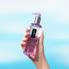 - Cambia de textura en aceite transparente a loción al contacto con el agua.