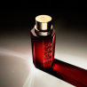 BOSS The Scent Elixir para Hombre reinventa un sorprendente frasco con el logotipo de BOSS sobre el vidrio lacado de color rojo intenso y su tapón dorado cálido con el monograma de la Doble B.