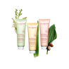 Su textura cremosa fresca con microperlas de origen vegetal se transforma en una suave espuma fina. La piel luce suave y limpia tras el aclarado.