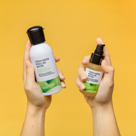 El Fresh Green Micellar Water con micelas naturales retira todas las impurezas y trazas de maquillaje de una forma suave, respetando la barrera dérmica.