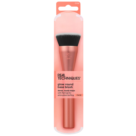 Real Techniques Glow Round Base. Brocha de maquillaje con el nuevo cabezal plano difumina la base de maquillaje para conseguir una base uniforme y suave con un acabado "air-touched"