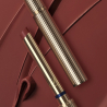 Impresionante estuche con el característico estriado en un glamuroso tono dorado.