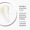 Su formulación a base de aceite de Soja, Escualeno, Ácido Hialurónico y extractos de Limón y Salvia no solo regula el sebo de la piel sino que además trata los primeros signos de la edad.