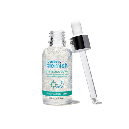 El nuevo Skin Rescue Serum de Bye Bye Blemish está cargado con altas concentraciones de Niacinamida además de Zinc para combatir las imperfecciones.