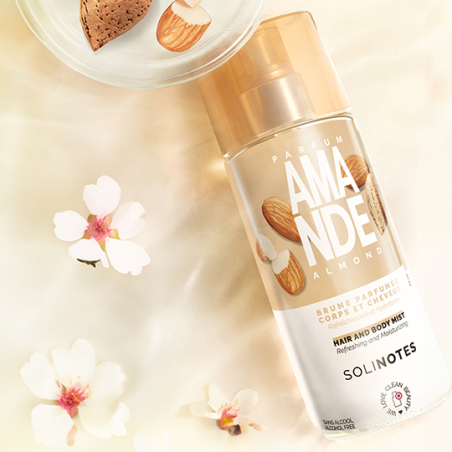 Solinotes Amande Body Mist. Aumente su estado de ánimo con la fragancia gourmand Almendra, un dulce aroma para un sorprendente y delicioso momento de bienestar.