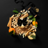 La mandarina dorada se mezcla con la suave flor de azahar y el delicioso pistacho cremoso en esta fragancia irresistible.