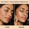 Las partículas de brillo se funden con la piel incrementando el reflejo de la luz.