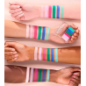 Esta paleta presenta seis tonos vibrantes que se activan con el agua con un acabado mate: rosa nude, lila suave, magenta brillante, verde intenso, azul menta pastel y ultramarino.