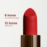 Gracias a su alta concentración de pigmentos, el color se mantiene vibrante e infalible hasta por 8 horas, dejando una sensación ultracremosa y confortable que dura hasta 12 horas.