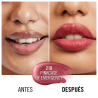 Hasta 16 horas de color inalterable. Color e hidratación de alto impacto. Brillo e hidratación para una sensación de confort en los labios. A prueba de roces, besos, cenas… ¡no mancha ni transfiere!.