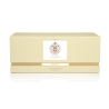 Una fragancia de personalidad reservada pero firme a la vez, iluminada por el recuerdo del néctar de pera y el heliotropo blanco, arropado por la dulzura del azúcar glas, el cacao y la leche.