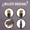 Kit completo para cejas. Contiene 2 cepillos profesionales. Duo compacto con cera para dar forma y fijar, y sombra para dar color y rellenar. El aplicador, con máximo control, ayuda a crear una línea uniforme y definida alrededor del contorno del ojo.Fórmula a prueba de roces, no se cuartea y resiste hasta 16 horas, eyeliner de larga duración. Dermatológicamente y oftalmológicamente probado.
