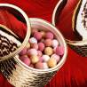 Inspirándose en las plumas del majestuoso fénix, el estuche se viste de colores rojizos y de un trazo dorado, y desvela una nueva armonía de tonos naturales, desarrollados para todos los tonos de piel.