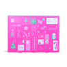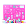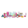30 ml de loción corporal, 30 ml de champú, 30 ml de acondicionador, 30 ml de gel de ducha, 30 ml de exfoliante corporal, 30 ml de exfoliante facial, 30 ml de limpiador facial, 30 ml de crema de manos, 20 ml de manteca corporal, 20 ml de crema para pies, 10 g de bálsamo labial, 10 ml de crema facial, 8 ml de mascarilla facial en gel, jabón estrella, jabón árbol, bomba de baño estrella, bomba de baño copo de nieve, sales de baño, confeti de baño, bomba de baño, esponja de baño, separador de dedos, lima de uñas, goma para el pelo.
