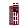PREPARACIÓN: 1. Encuentra la talla correcta; 2. Si estás entre tallas, elige la más pequeña; 3. Lava y seca manos; 4. Empuja cutículas; 5. Limpia uñas con la toallita incluida.