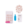 ADHESIVOS: Selecciona pestañas adhesivas que coincidan con la talla de la uña, aplica la pestaña adhesiva en la uña natural, retira la película y alinea la uña con la cutícula; presiona firmemente en el centro y los lados.